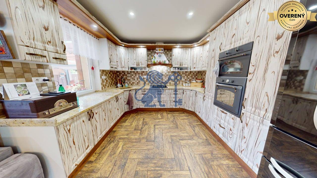 Jednopodlažný rodinný dom (bungalov) má celkovú výmeru pozemku 670m2, zastavanú plochu 173m2 a plochu záhrady a spevnených plôch 497m2. Otvorená dispozícia obývacej izby a kuchyne prepája interiér domu, cez zimnú záhradu na terasu, s exteriérom. Plne vybavená kuchyňa s jedálňou a obývaciu izbu prepojená so zimnou záhradou vytvárajú na bývanie príjemný priestor. Hlavná spálňa sa nachádza oproti dennej časti domu a dve spálne (detské izby) pri hlavnom vstupe. V dome sú dve kúpeľne a dve wc. Prvá kúpeľňa je s vaňou a druhá (aj ako technická miestnosť) s priestranným sprchovacím kútom. V dome je inštalovaná výkonná klimatizácia a kamerový systém. Kúrenie je podlahové a zdroj je plyn (plynový kondenzačný kotol).