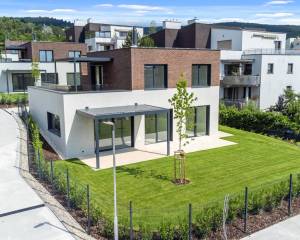 Vo vilách sú zabudované kvalitné hliníkové okná s izolačným trojsklom vo farbe antracit, vonkajšie elektricky ovládané exteriérové žalúzie, hliníkové bezpečnostné vstupné dvere, hliníkové pergoly, zábradlia z bezpečnostného číreho skla na terase, betónové potery, sadrové vnútorné omietky, príprava pre kuchynskú linku, kompletná vodoinštalácia a elektroinštalácia, zelená strecha na terase. Každá...